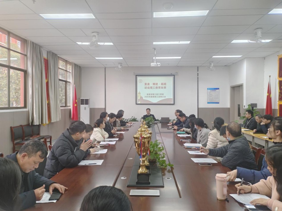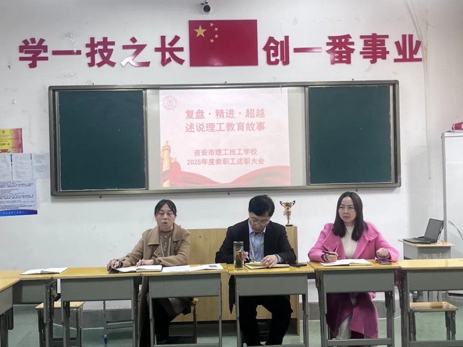 为全面总结过去一学年的办学经验,进一步提升学校管理水平与教育教学质量,筑牢全校上下步调一致的共同体意识,吉安市理工技工学校于2026年1月17日召开了2025年度年终述职报告大会。这不仅是对过去一年工作的“复盘会”,更是一次面向未来的“动员会”。全校教职工以饱满的热情和严谨的态度,共同度过了充实而意义非凡的一天。