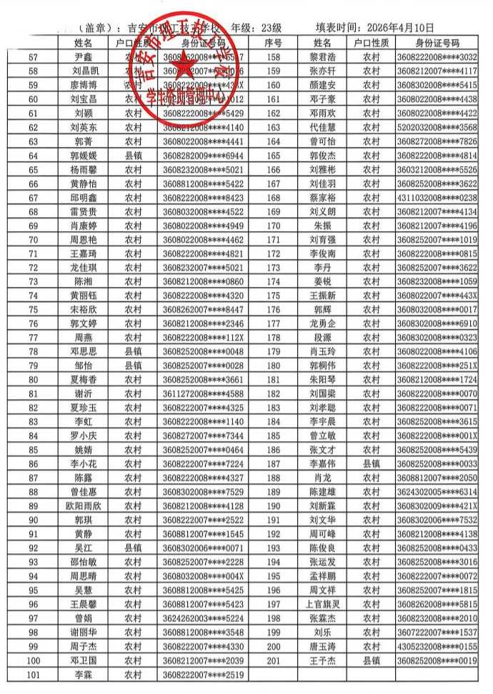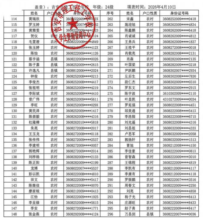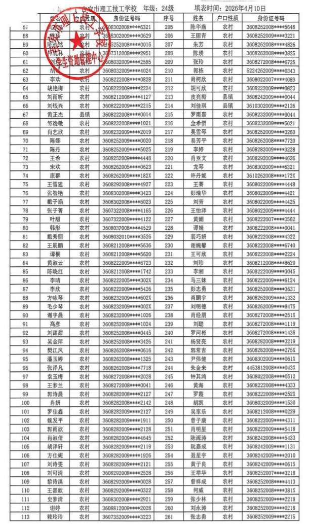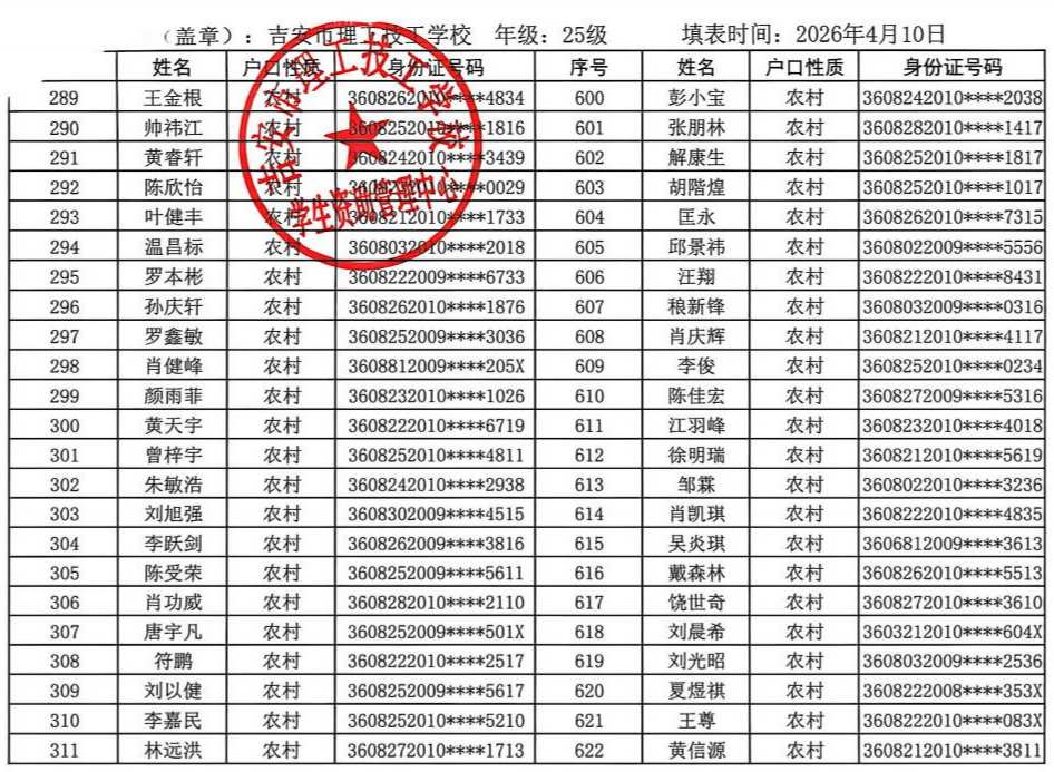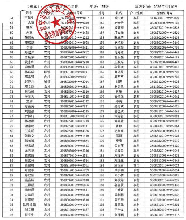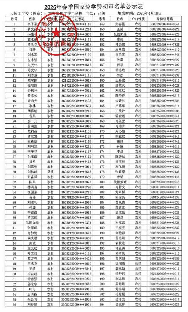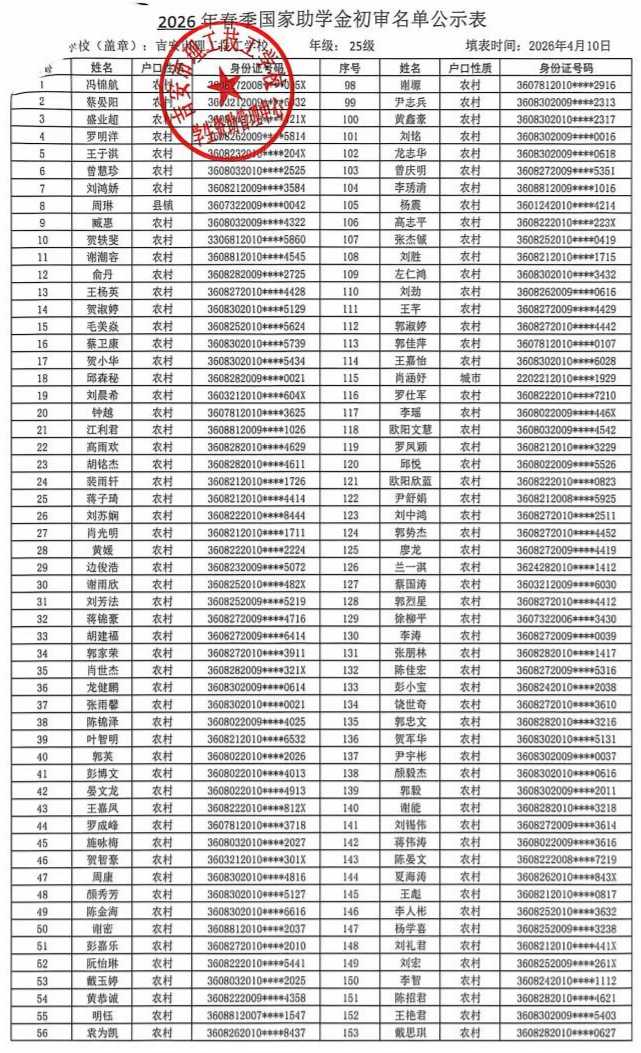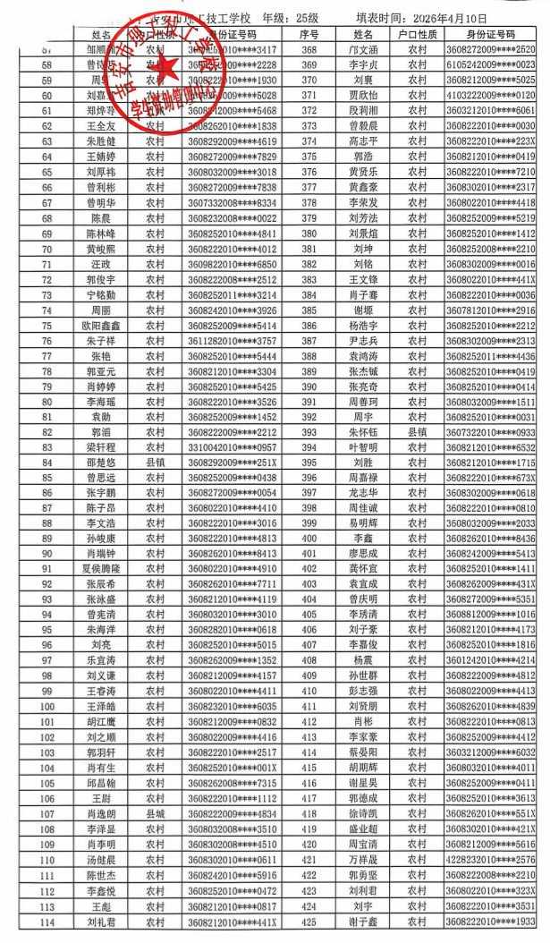 关于吉安市理工技工学校2025年春季学生国家助