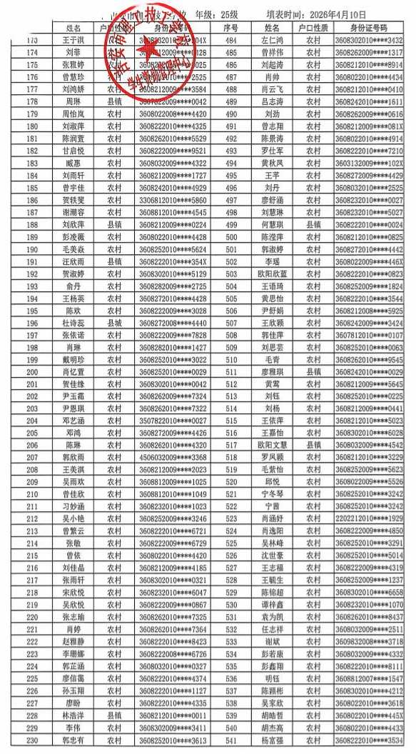 上一篇:关于吉安市理工技工学校2025年秋季学生资助名单的公示