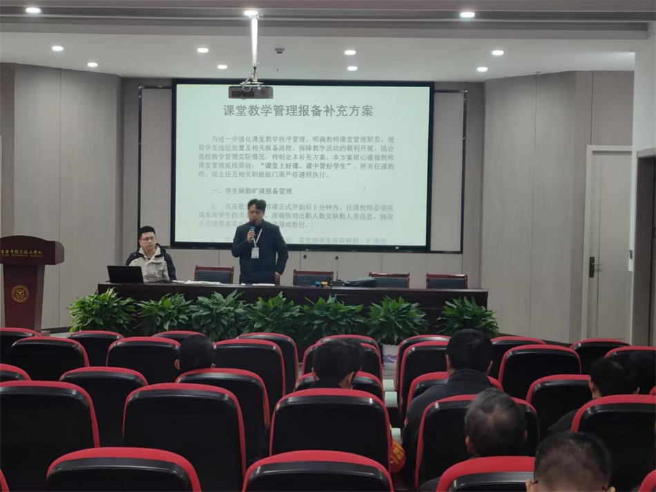 针对下一阶段工作,会议强调必须严格执行《课堂教学管理报备补充方案》。各教学单位要落实相应制度,重点提升课堂互动质量。对于新聘教师和教学困难教师,学院要组建帮扶团队,通过集体备课、示范课观摩等方式,帮助其优化教学方法,站稳讲台。