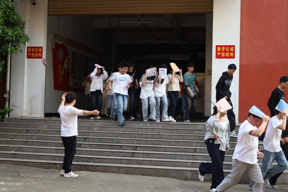 与此同时,在楼道、楼梯转角等易发生拥挤踩踏的关键位置,疏散引导组老师早已就位。主震信号结束后,“紧急疏散”指令下达,教学楼内学生在班主任指引下,按照“先低层后高层、靠右行走”的原则快速撤离。引导老师不断提醒:“不要拥挤!注意脚下!护住头部!”学生们弯腰低姿,用书本保护头部,沿预定路线向操场集结。
